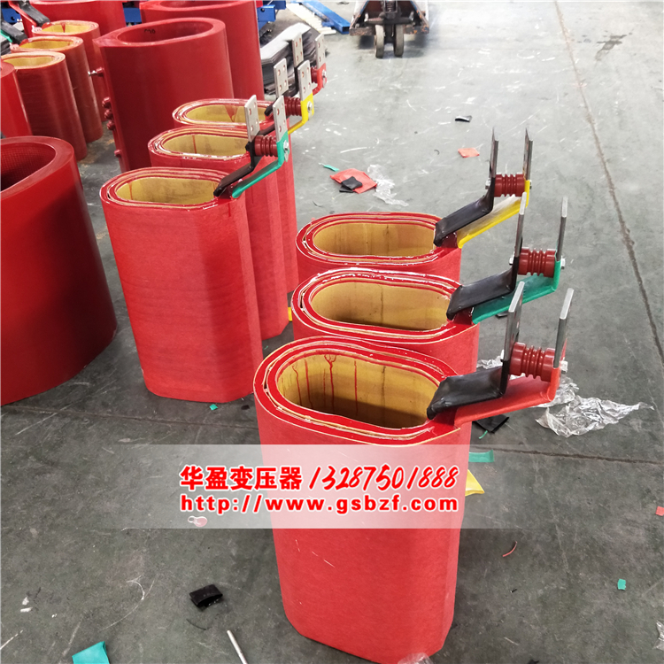 铁心采用非晶合金带材卷绕而成,根据需要采用三相五柱式或三相三柱式卷铁心结构,铁心截面成矩形;高压线圈采用分段圆筒式线圈,薄绝缘密封真空浇注,大容量绕组内设轴向气道,线圈耐压水平高,局部放电量低,防尘、冷却效果好。低压线圈采用箔式线圈,层间设DMD预浸布热固化成型,有效解决了低压、大电流线圈采用线绕时的安匝不平衡问题,同时箔式线圈不存在轴向绕制螺旋角,短路时变压器承受的轴向力大大减小,工艺性好,附加损耗低,抗短路能力强;